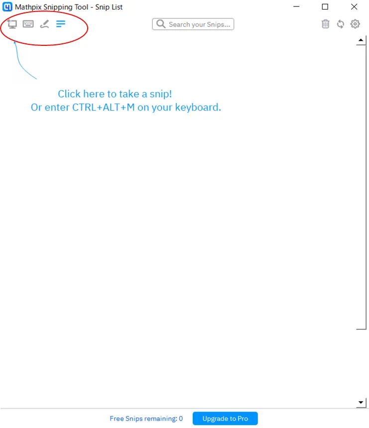 Mathpixをダウンロードしたら,下図左上のアイコンから使用したい読み取り方法に応じて選択していきます.