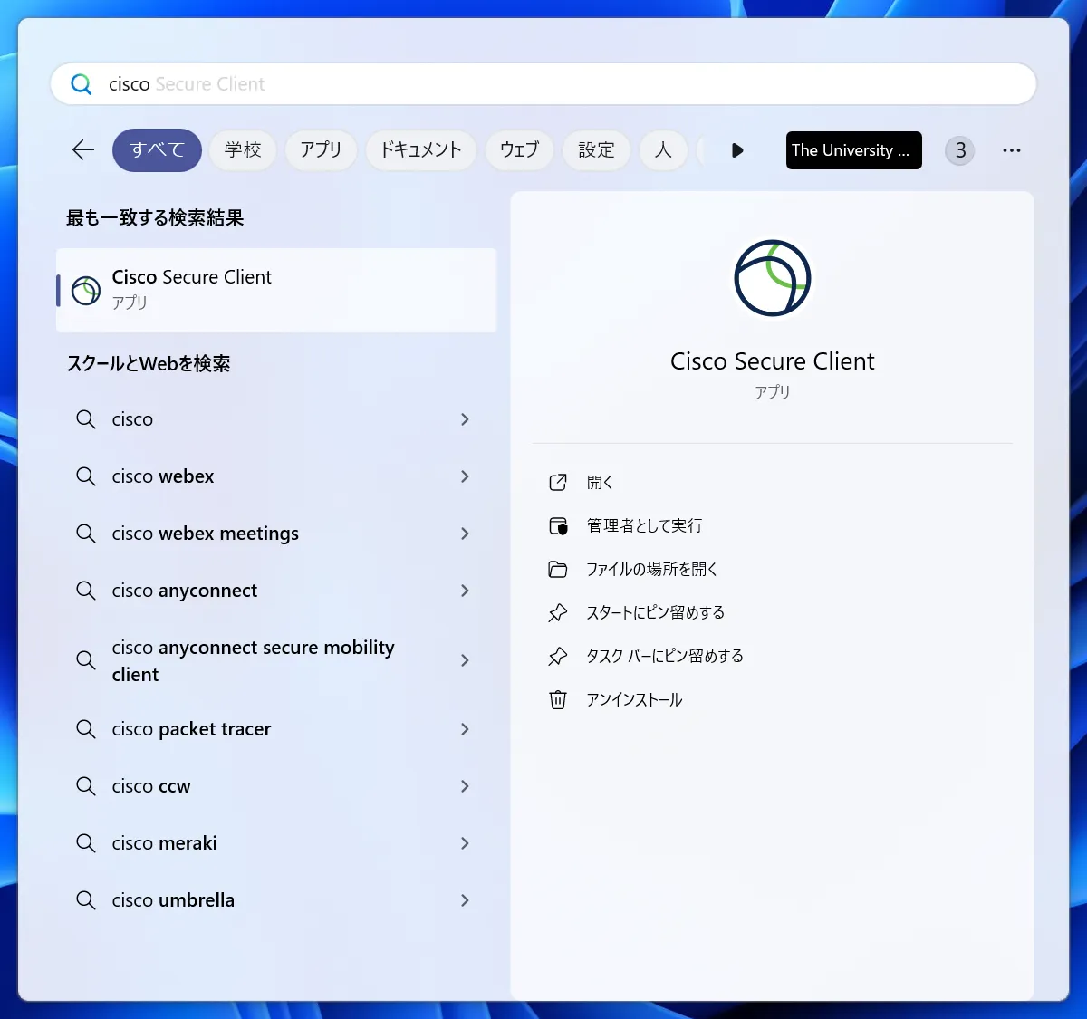 手順D: インストールが完了すると,アプリにVPNクライアントアプリケーションであるCisco Secure Clientが追加されています.